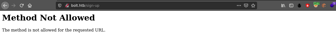 ffuf previously found two pages /register and sign-up that I assumed are the same pages because their contents looked similar. Both are used to create an account, but while /register gave a 500 HTTP error, /sign-up gave a different response;