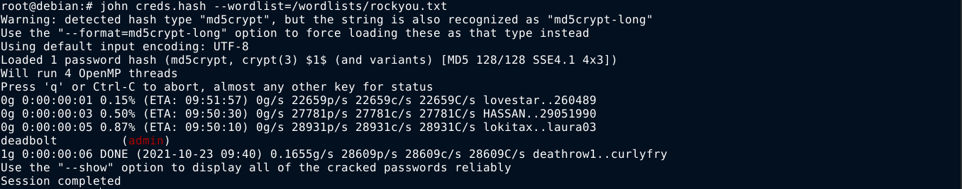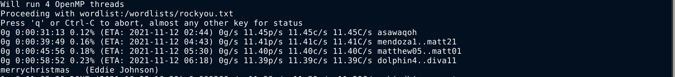 john. - Finally, I used the cracked private key to decrypt the encrypted message, which was found to contain a password. The password gave access to the root account.