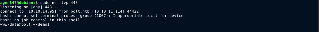 - Found an invite code in the source code of http://demo.bolt.htb, which I used to create an account on http://demo.bolt.htb, and gained access to the admin dashboard.