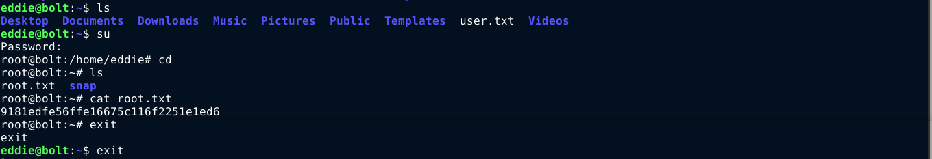 Bolt is a very interesting medium linux box featuring some heavy enumeration. For foothold, you exploit a web page that’s vulnerable to SSTI. After some enumeration, you will find a MySQL credential in a configuration file, which will give you access to a local user. For privilege escalation, you will take advantage of a chrome extension that dumps GPG keys into it’s logs on disk.