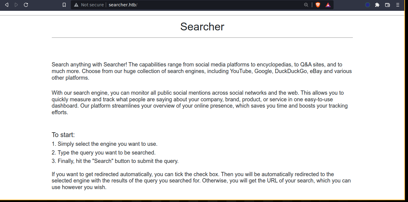 |_http-title: Did not follow redirect to http://searcher.htb/