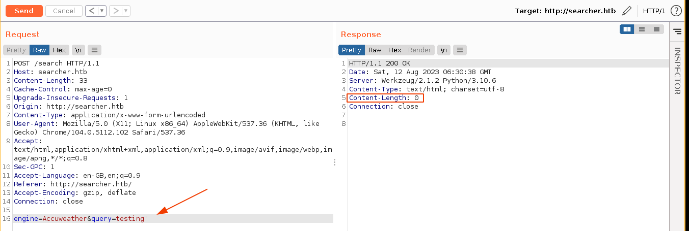 Suspected SQL injection, but none of the usual payloads seems to work. I installed Seachor locally for testing;