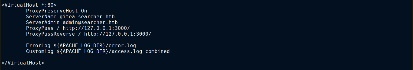 Further enum showed a local apache2 VHOST in /etc/apache2/sites-enabled/000-default.conf;
