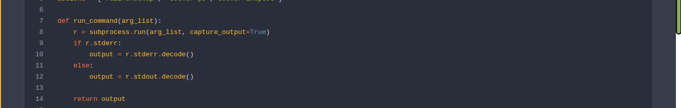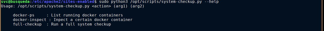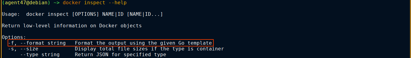 The docker-inspect allows us to supply a format and container name. This is interesting because docker has an inspect command used to pull info from containers if we can supply a custom Go template;