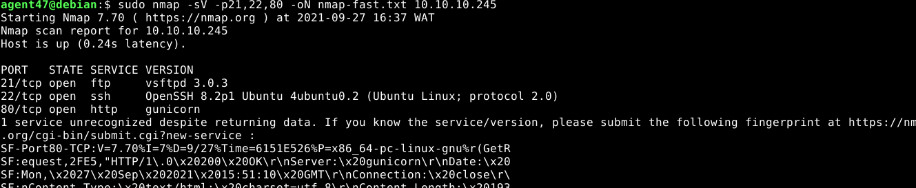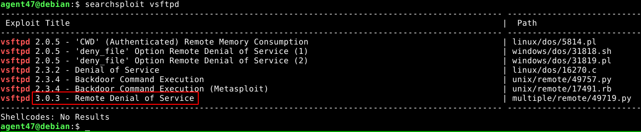 Searching Expoit DB using searchsploit indicate the vsftpd service running on the host is vulnerable to a DoS attack. This isn’t something I’m interested in doing.