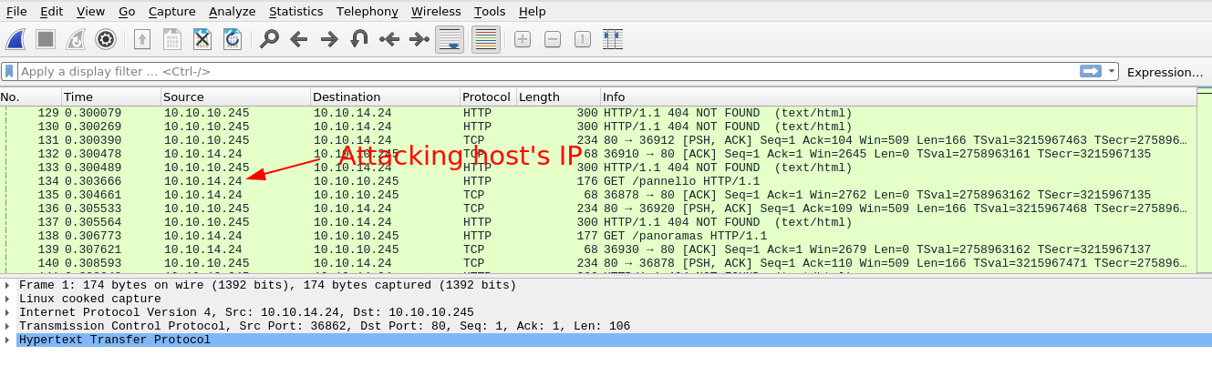 The below URL provide a PCAP for download. On analysis, the capture packets showed many HTTP packets exchanged between my attack host and the target box. This makes sense since at the time of the download, I was using ffuf in the background to bruteforce hidden files on the web root. The PCAPs were generated after making a request to /capture.