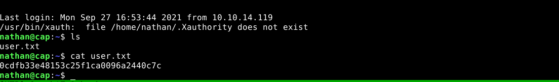 nathan, which gave me access to the system via SSH. - In the system as the user