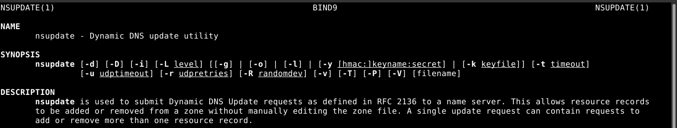 This means I need to map my IP to match the above hostname. Using the nsupdate utility and the keys inside /etc/bin, I was able to gain SSH access after lots of googling about nsupdate;