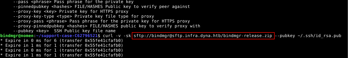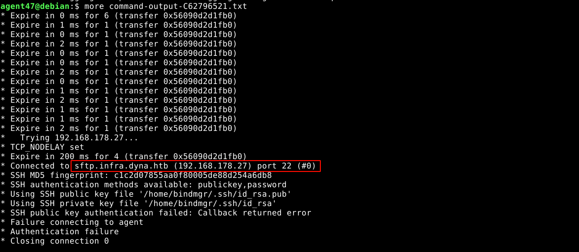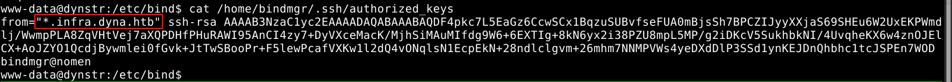 Looking at the authorized_keys file in bindmgr’s SSH directory, I noticed that access is allowed only to hosts with the name *.infra.dyna.htb;