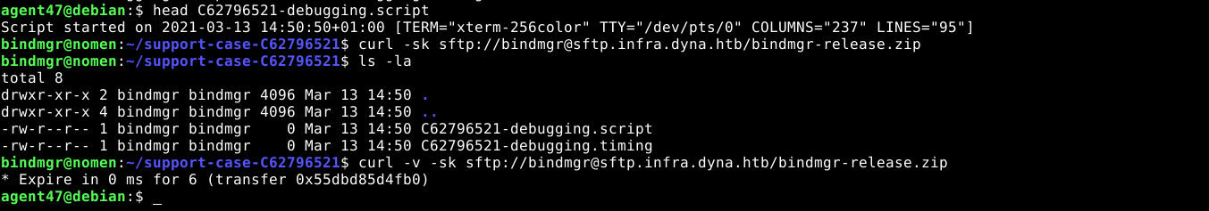 binmgr, anddyna, were discovered. The home directory ofdynais practically empty, while that ofbindmgrcontains the user flag which is not readable, and some interesting files. - The files obtained from the home of