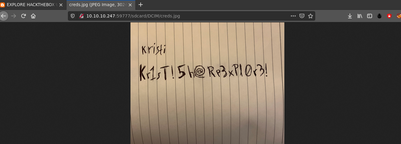 Requesting the file in a browser, I got the credential kristi:Kr1sT!5h@Rp3xPl0r3!;