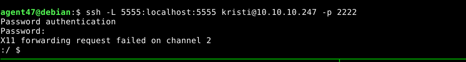 I then setup an SSH tunnel between my attack host and the target to allow access to the service;