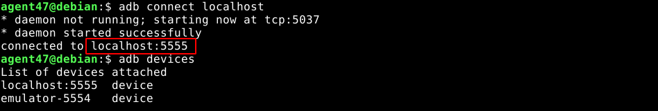 kristi;- Setup an SSH tunnel from my attack host to the target on port 5555, which is the port used by ADB.