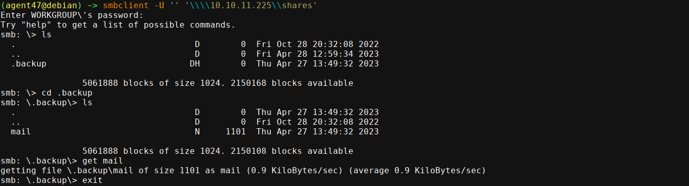We have a read access to the share named shares. I was able to connect using smbclient, and download a file;