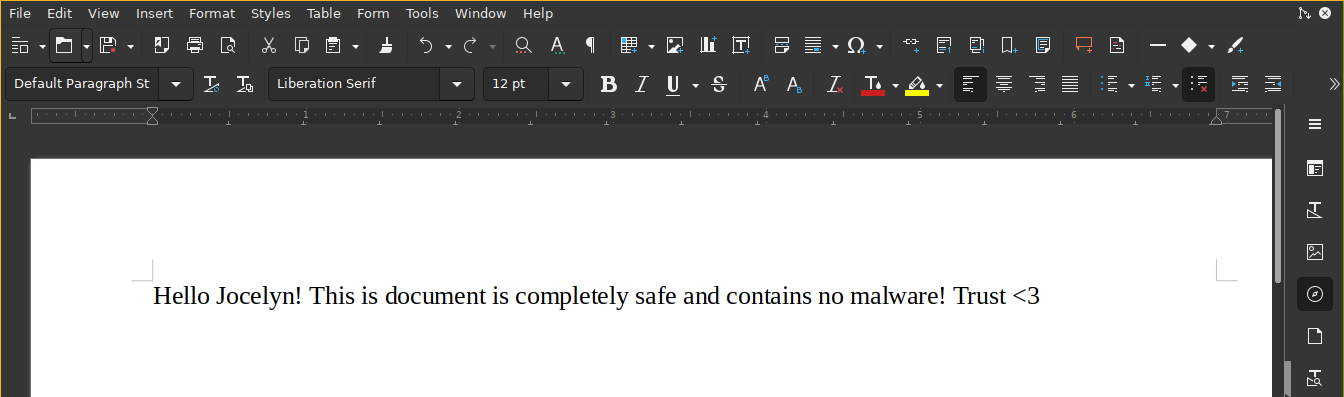 Our dear Jocelyn received another phishing attempt last week and his habit of clicking on links without paying much attention may be problematic one day. That's why from now on, I've decided that important documents will only be sent internally, by mail, which should greatly limit the risks. If possible, use an .odt format, as documents saved in Office Word are not always well interpreted by Libreoffice.