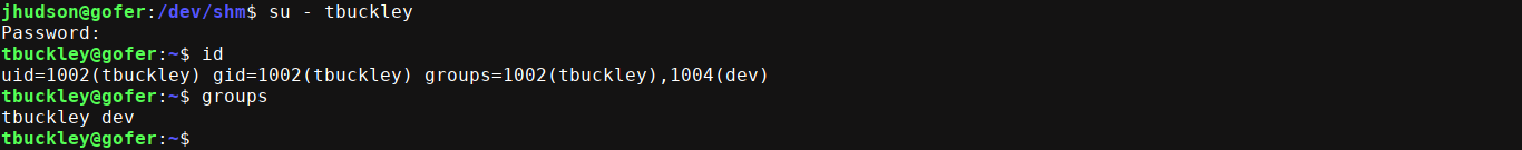 .odtfile tojhudson@gofer,htb, which gave me a shell on the box.