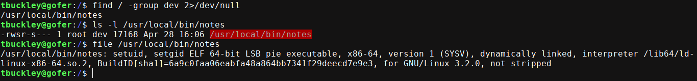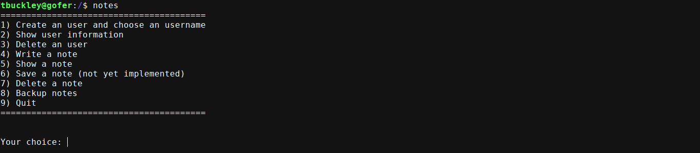 tbuckley@gofer:/$ notes