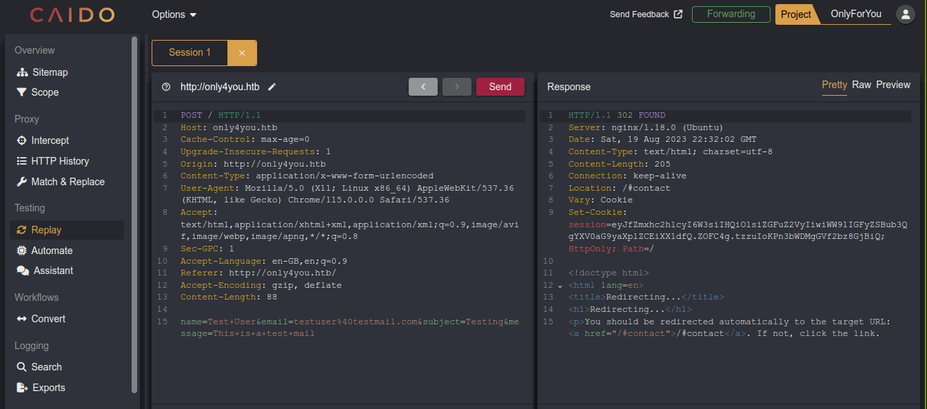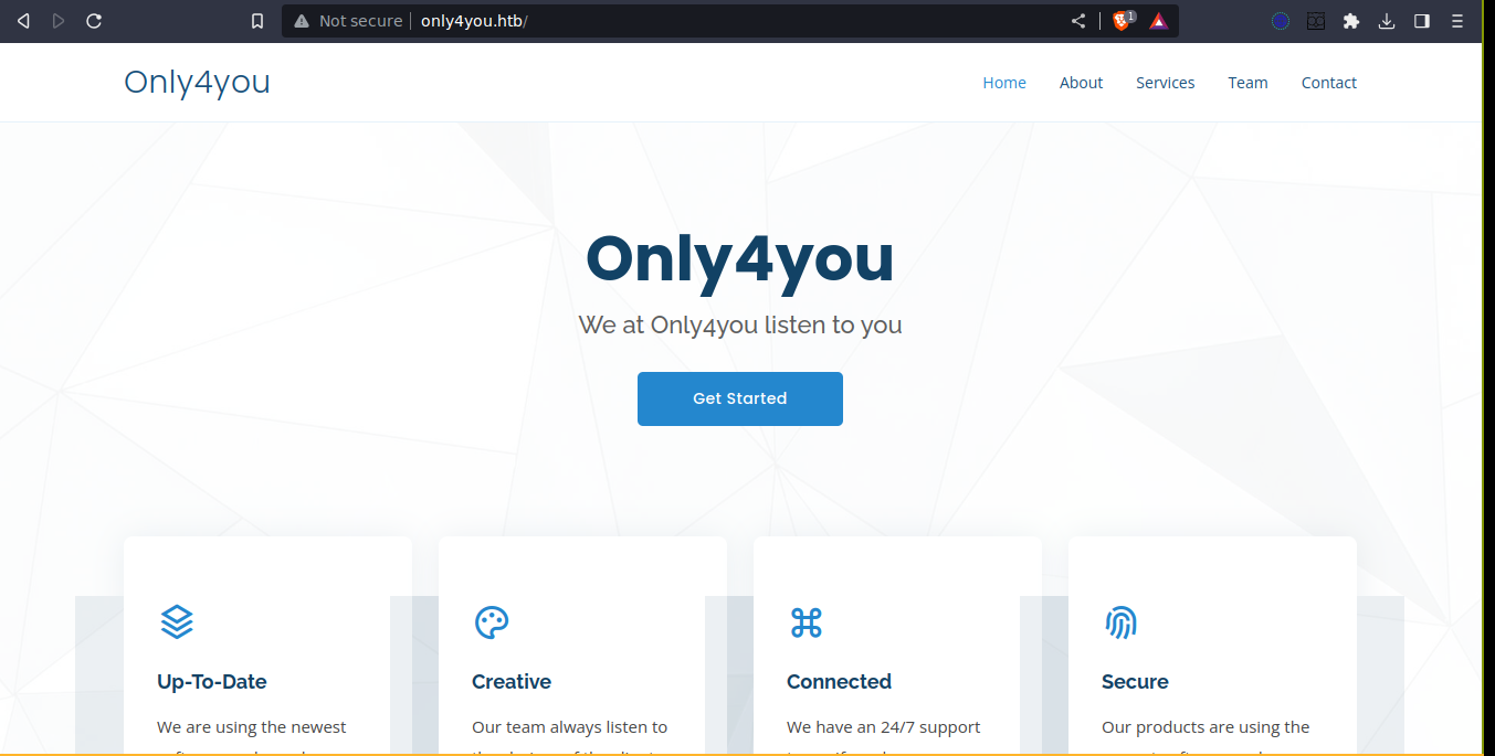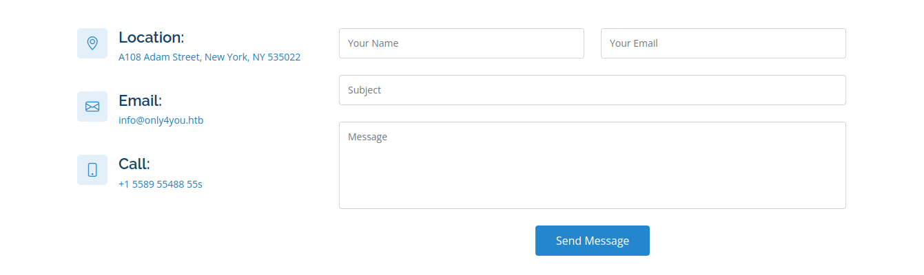 NMAP showed port 80 is redirecting to http://only4you.htb, so I added it to my /etc/hosts file;