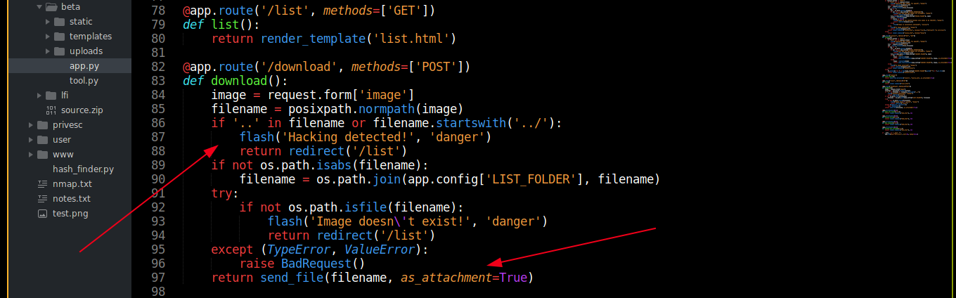 The Source Code button links to http://beta.only4you.htb/source, which start a download for source.zip. The source code of the web app is found inside (it’s a flask web app);