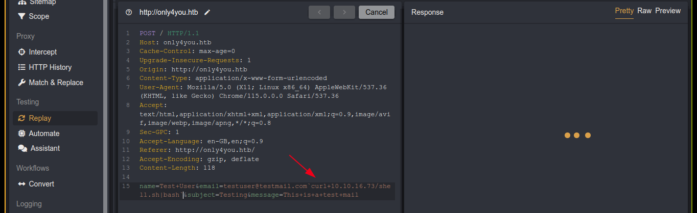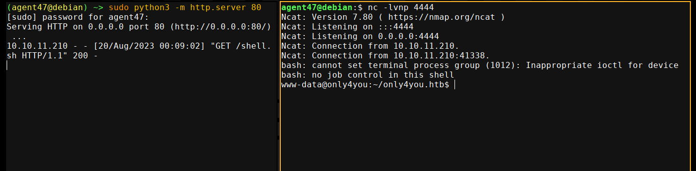 only4you.htband identify a code injection vulnerability, which gave me a shell aswww-data - Inside as
