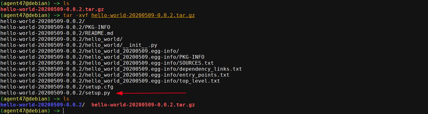 I got a minimal python package with no dependencies (which is important as HTB boxes are not connected to the internet, which will be required to resolve unmet dependencies) at pypi. I extracted the archive with;
