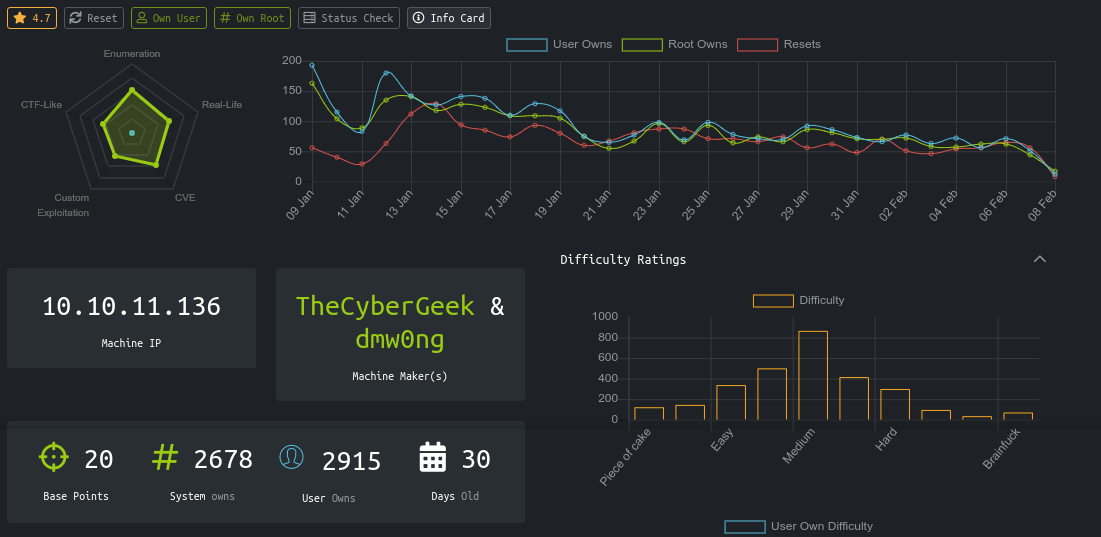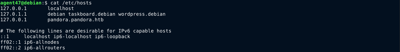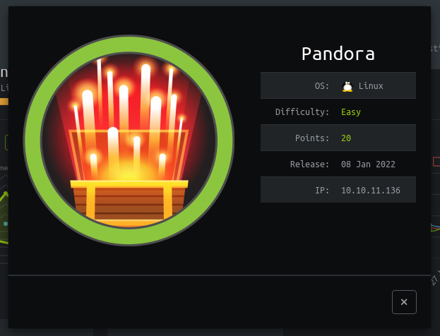 Pandora is an easy linux box. It starts with a website, which you don’t really need because foothold involves enumerating an SNMP service on port 161 (UDP) for running processes, which will give you the credentials of a local user. This will give you SSH access to the box, which you will use to setup a tunnel to an apache vhost that’s accessible only locally. This site is vulnerable to LFI ( I later found out this is unintended, and never got around to actually doing the box the intended way :p ) which you can use to move to another local user, and from there exploit a custom SUID binary through path tampering to gain code execution as root.