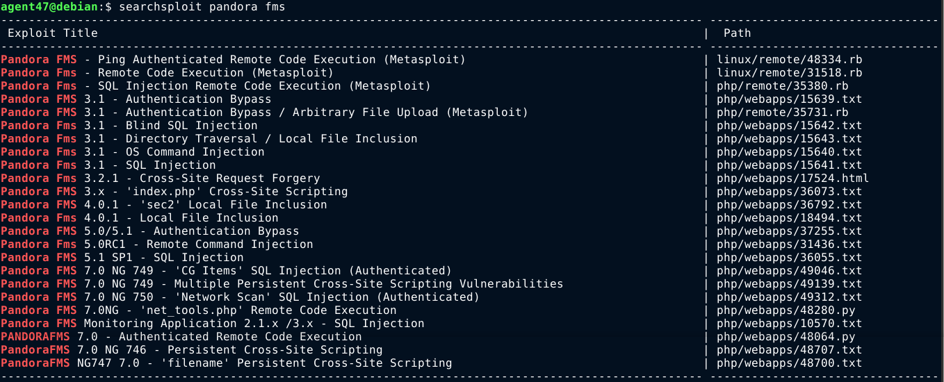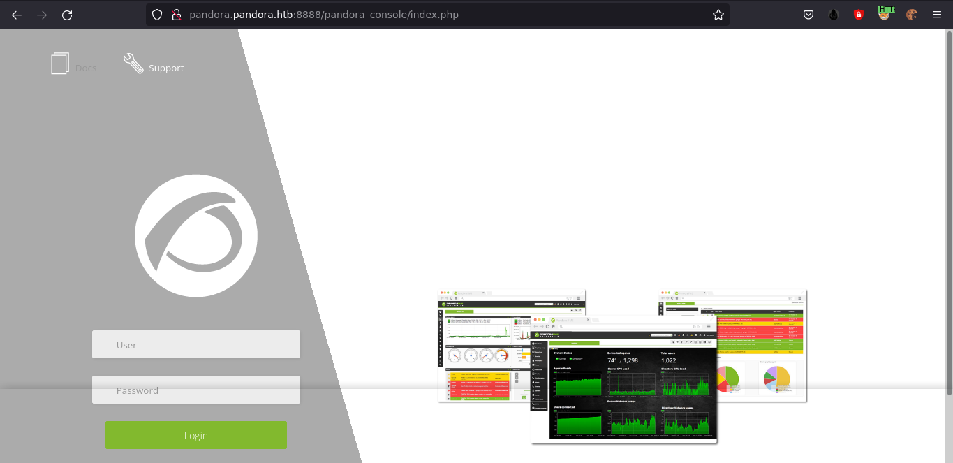 After poking around a little inside the box, the apache configuration file at /etc/apache2/sites-available/pandora.conf showed a hidden subdomain;