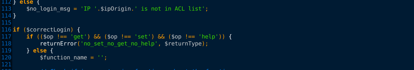 The above gave us three valid values for the op parameter, which are get, set, and help. Looking further into the source code revealed something nice;