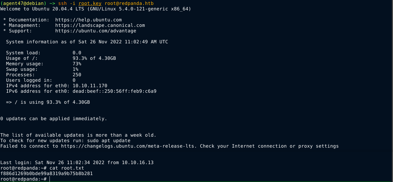 I saved the key as root.key on my box, and was able to login and get root flag;