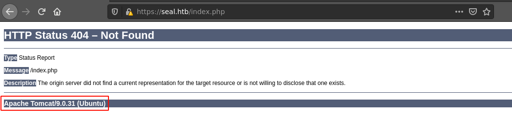 One thing I noticed is the lack of web service running on port 80, but a HTTPs service on port 443. The NMAP scan identified the web server as nginx 1.18.0, but the server was later identified as Apache Tomcat 9.0.31 during manual probing to determine if the server uses PHP;