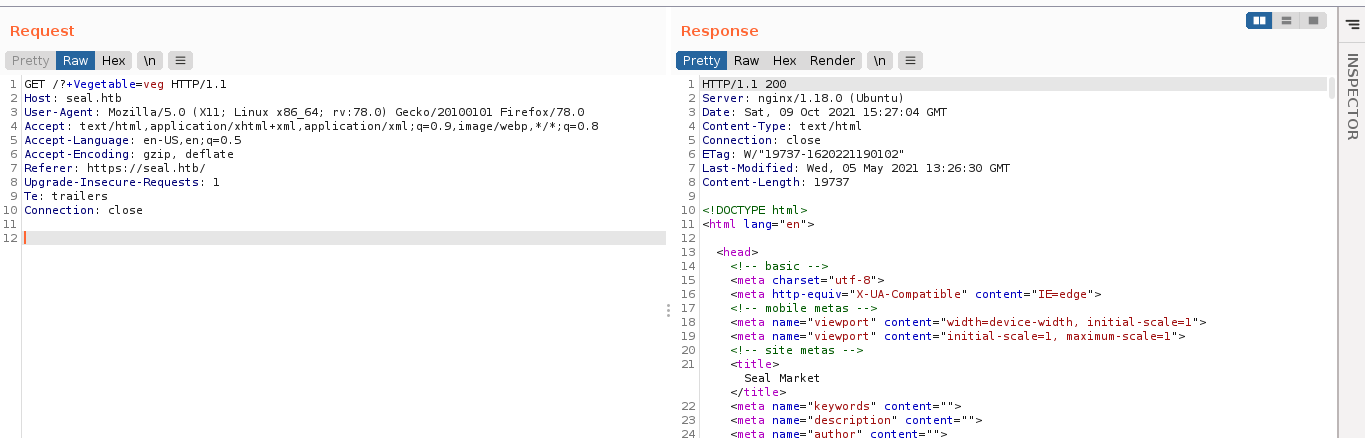 Continuous fuzzing of the Vegetable parameter showed above made no difference on response received, indicating the web page might be static.