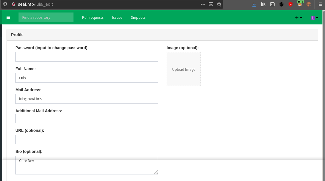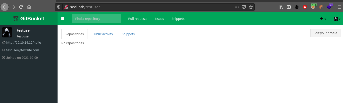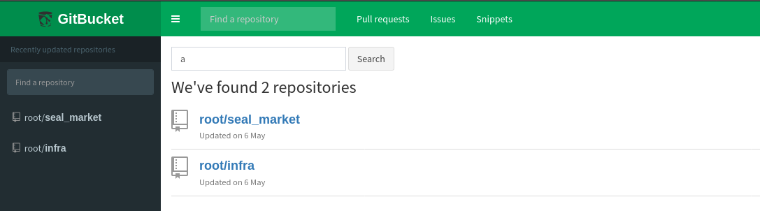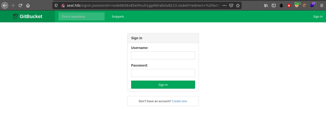 /admin/web service on port 443, which redirect to http://seal.htb/admin/, which lead me to a GitBucket installation using the proxy on port 8080. - Inside GitBucket;