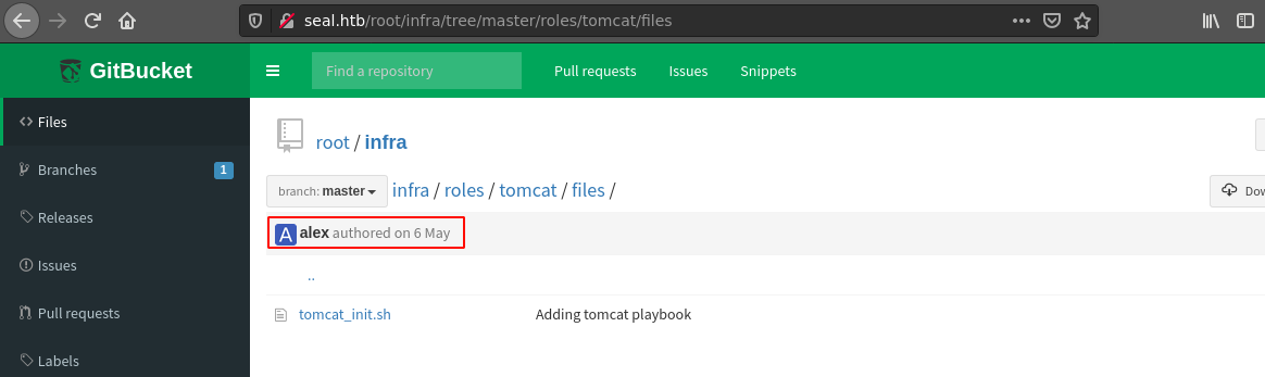 Seal is a medium linux box. It features a web service on port 443 running Apache Tomcat, and a GitBucket installation running locally, but accessible through the proxy on port 8080 (nginx). The GitBucket allows a user to create an account, which I did. Once inside, I recovered a password in a previous commit in one of the repositories. This credential was accepted by the tomcat admin login page, but access to the panel was blocked by nginx. This was bypassed thanks to a path normalization vulnerability, and the .war upload used to deploy web applications in tomcat was used to gain code execution on the server.