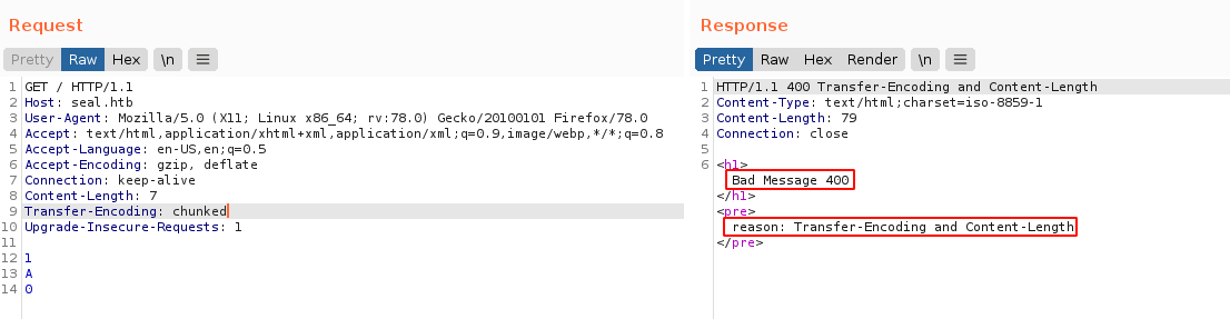 I then started testing the HTTP proxy for HTTP request smuggling attacks, which is an attack I had to learn on the fly, and it didn’t work as the proxy blocks the use of both Content-Length and Transfer-Encoding headers in a single request, which the method I was trying depends on. Some bypass techniques that include adding a whitespace in front of the header name, and a tab in front of the header value, were also detected by the proxy, and blocked;