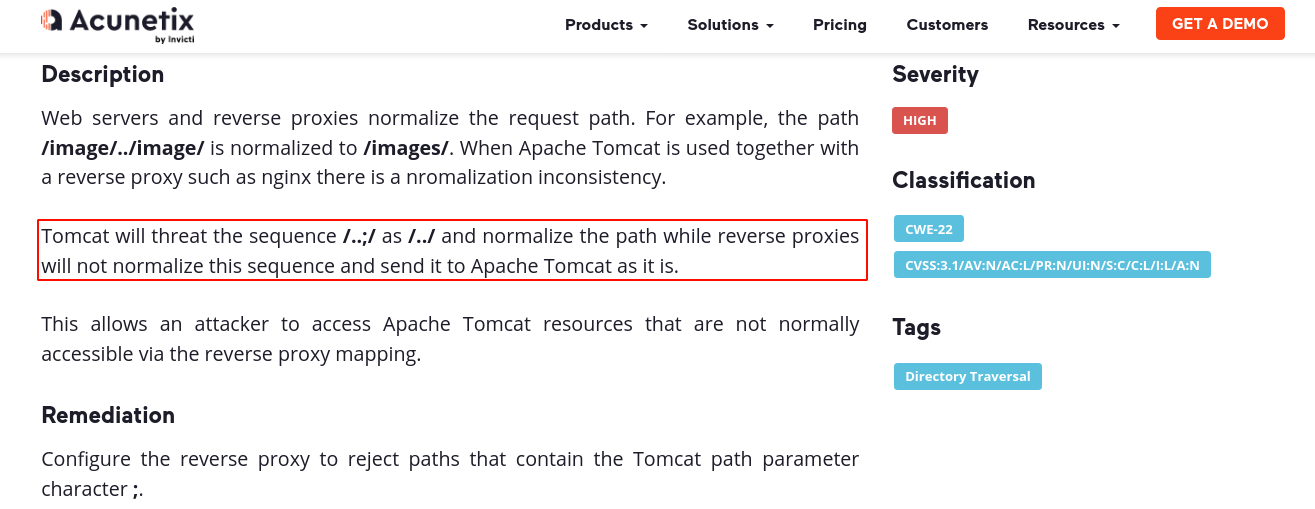 I went fully manual using Burp Suite and researching ways to bypass that 403, as I was quite confident this should work due to the presence of the reverse proxy. After lots of trials and errors, I found an article on Acunetix about a path normalization vulnerability when accessing Apache Tomcat using Nginx as a reverse proxy;