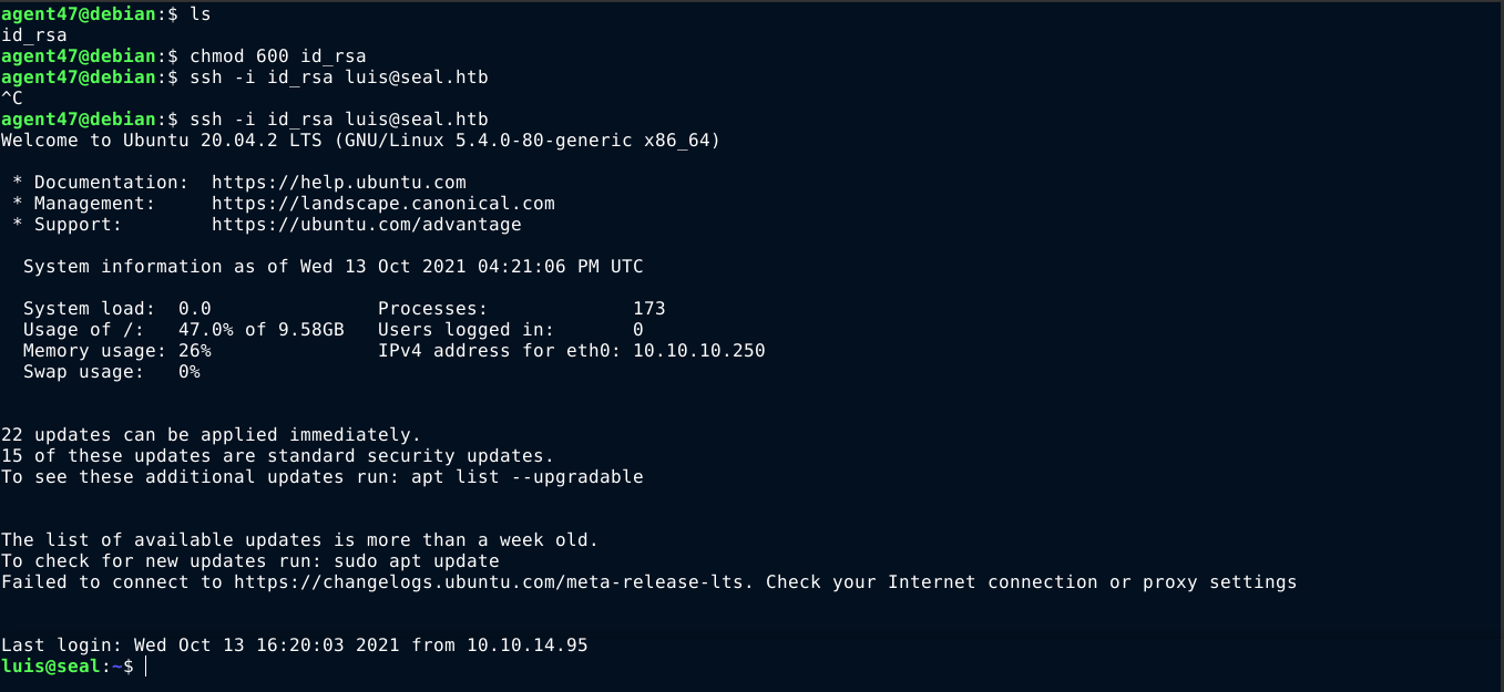 ansible-playbookfetch a user’s SSH private key, which I used to gain access to the box over SSH as the user luis.