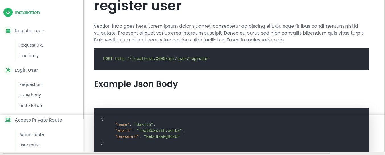 The /doc path in the website provides a demo for creating and accessing accounts using the API;