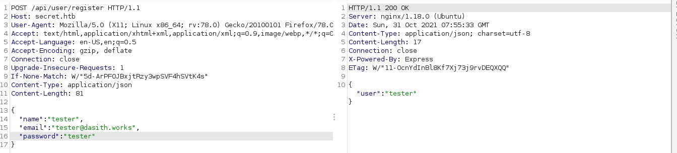 Using Burp Suite, I was able to create an account using the following request;