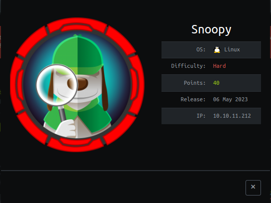 Snoopy is a hard-rated linux machine on HackTheBox. It starts with a domain takeover by leaking DNS key to takeover a Mattermost account and exploit a custom command to capture SSH credentials. You’ll then move to another local user by exploiting CVE-2023-23946 affecting git apply. Privilege escalation to root is through ClamAV.