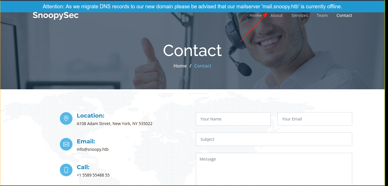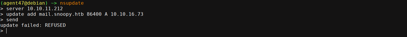 update add mail.snoopy.htb 86400 A 10.10.16.73