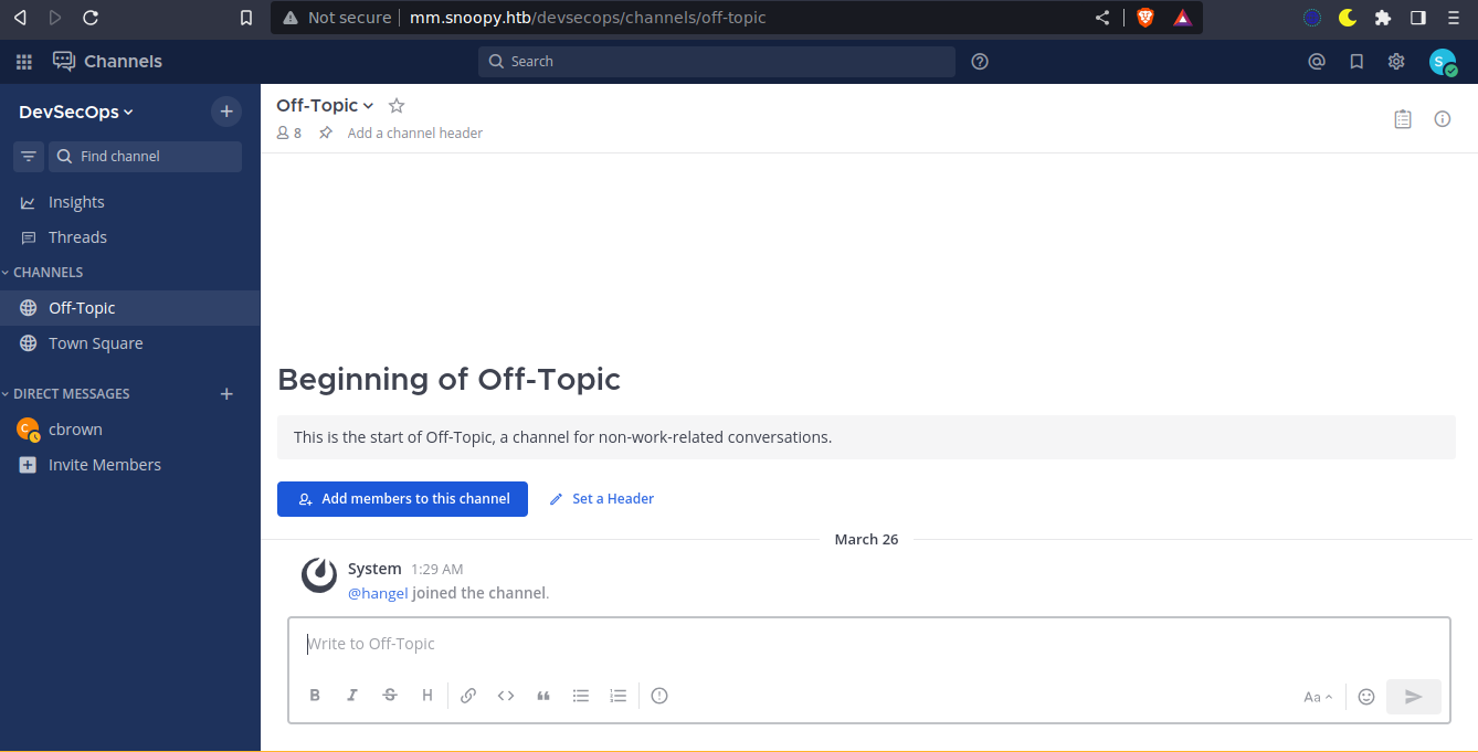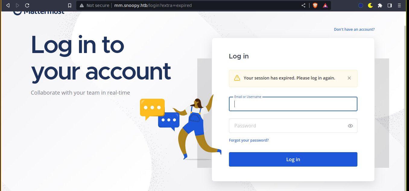 Note that email.snoopy.htb is not here, as hinted in the warning earlier. An instance of Mattermost is running on mm.snoopy.htb;