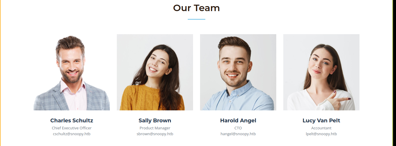 Now we need to know some email addresses of potential users. The team section of the main page has a few;