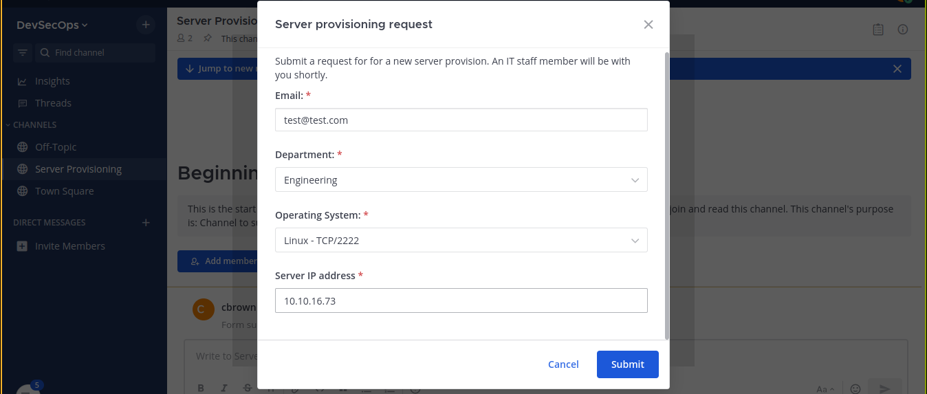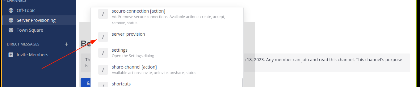 We now have access to the channel, but it’s empty. Checking for channel commands by typing / in the message field, something stood out;