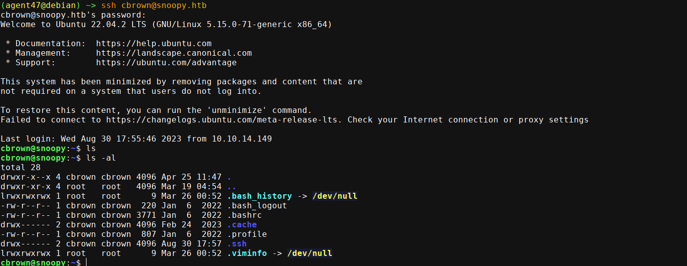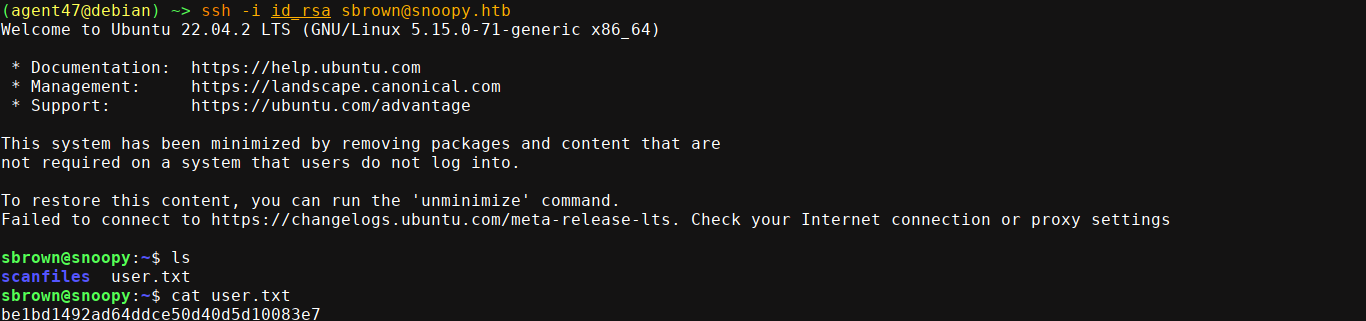This was enough to build an exploit that would drop an SSH key into the home directory of sbrown;