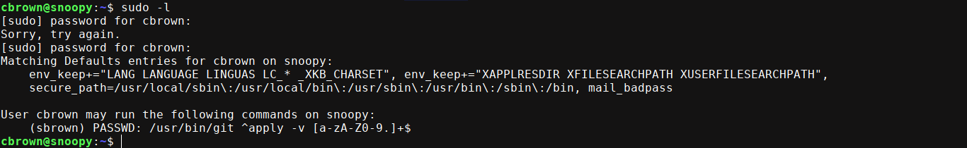 cbrown;- Exploited CVE-2023-23946 (git apply) to gain access to