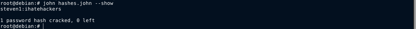 Using john, the password hash was cracked successfully;