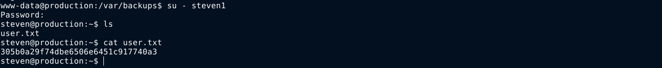 /var/backups/info. - Recovered a hash from it, which was cracked to gain access to the account of steven.